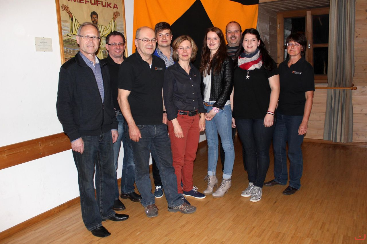 Hans Mesch (3. Bürgermeister, kein Vorstandsmitglied), Robert Poss, Karlheinz Hitzler (1. Vorsitzender), Tobias Schickinger, Ulrike Wurm (2. Vorsitzende), Tabea Grünbeck, Wolfgang Lob (Schriftführer), Sarah Huber, Heidi Konrad - nicht auf dem Bild: Isabella Lipp und Angelika Rieger (Kassiererin)